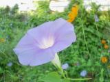 朝顔とキバナコスモスが一緒に咲いてました。