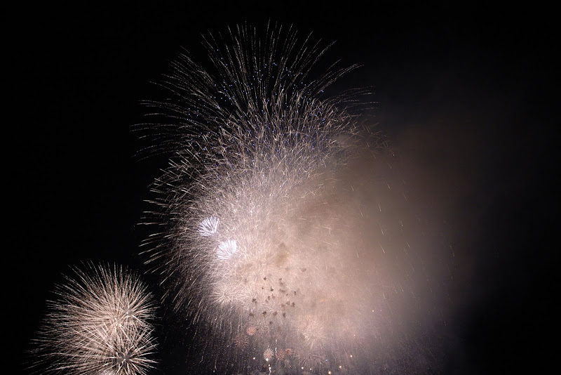 雨の中でも、こんな前で綺麗に花火見れたら、帰れませんな~