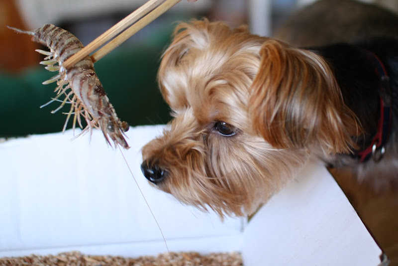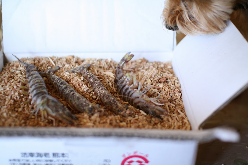 もらいもんの海老に、みかんが興味津々です。