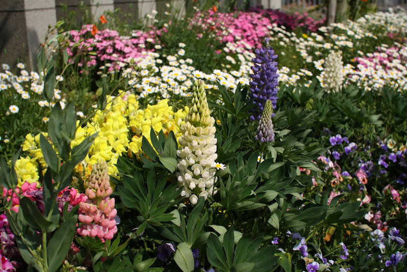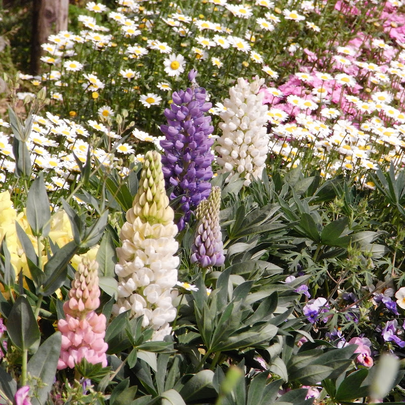 ルピナスが色とりとりの花に囲まれ綺麗に咲いてくれました。